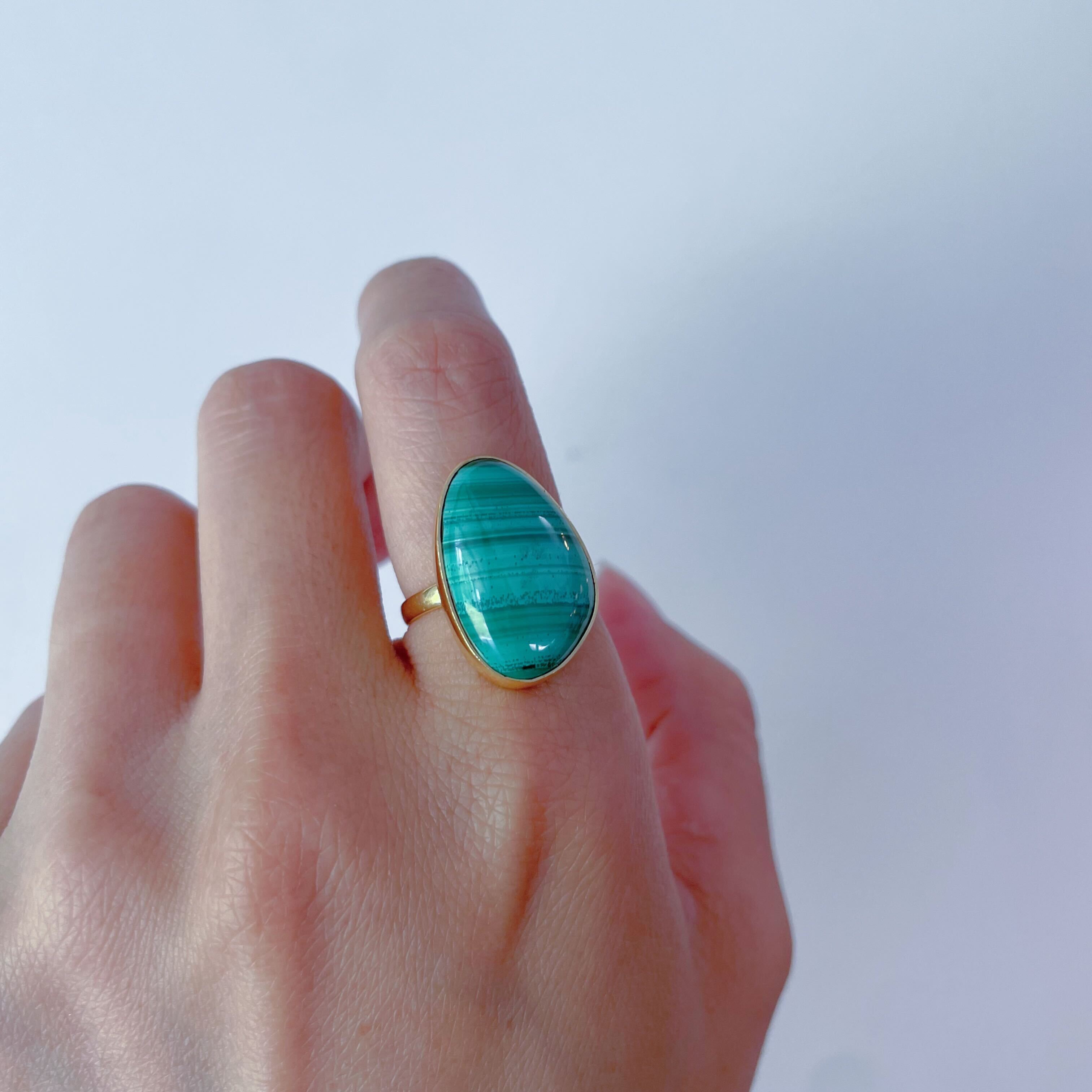 マラカイト特有の縞模様が織りなすグリーンのグラデーションは、自然が創り出した芸術品のよう。