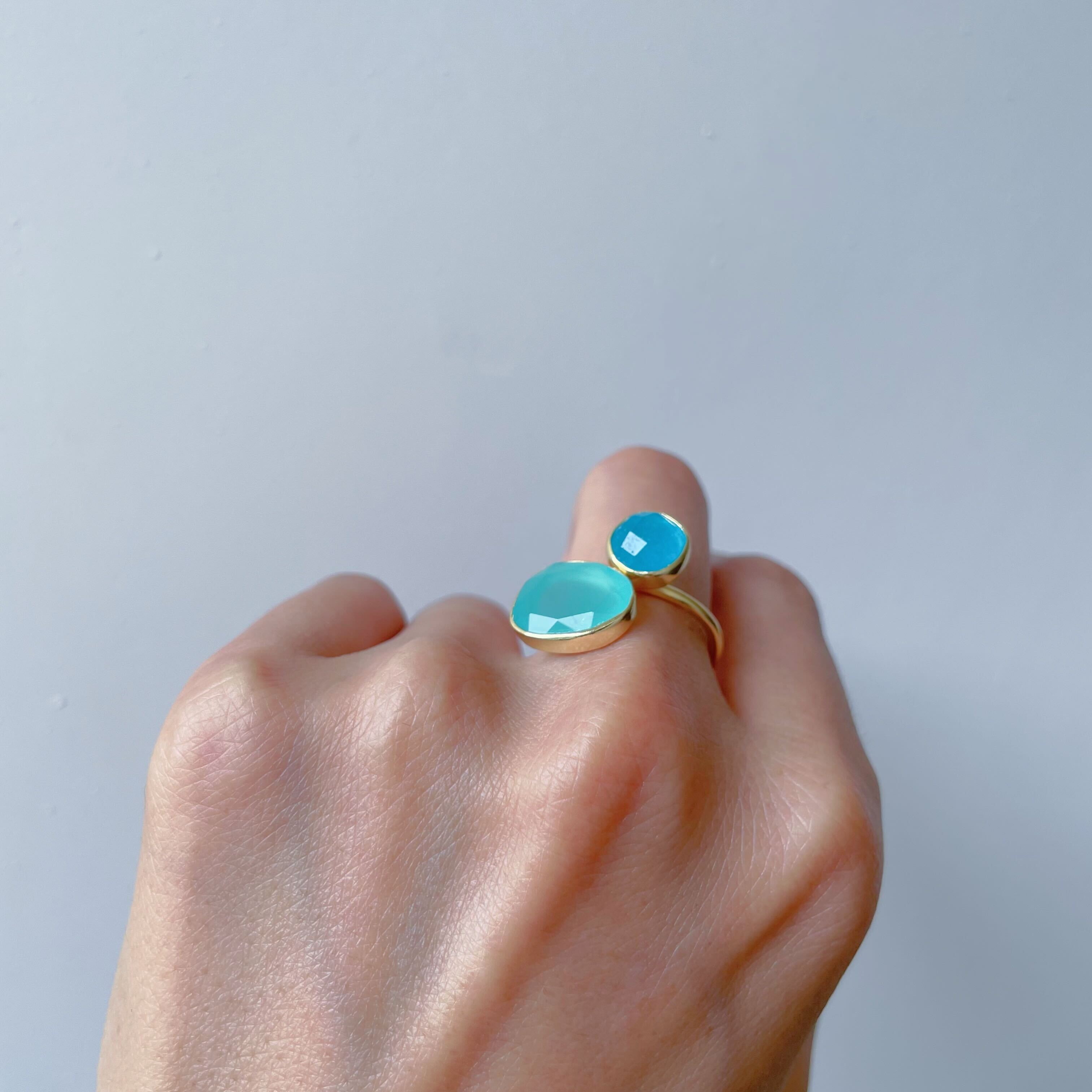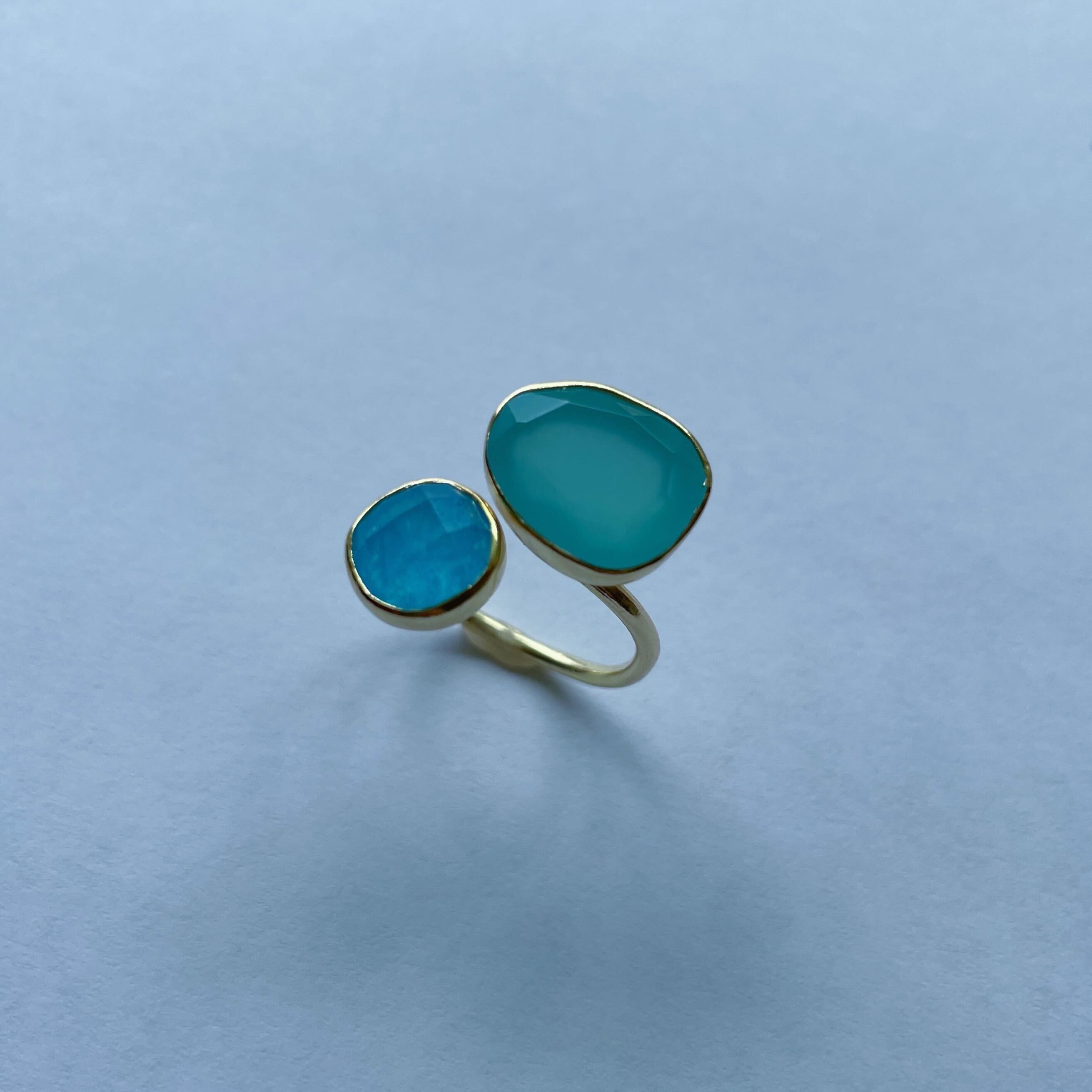 ダブルストーンリング(Aqua Quartz & Sky Blue Jade)|GOLD